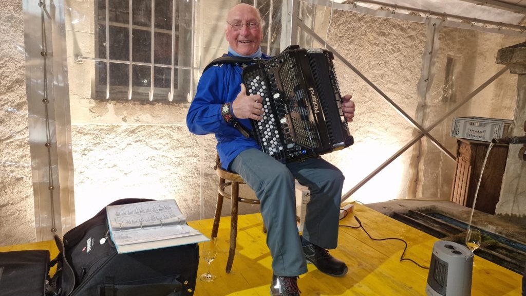 Jan essaye ma curieuse guitare qu’il a appréciée malgré la gueule qu’il fait !
