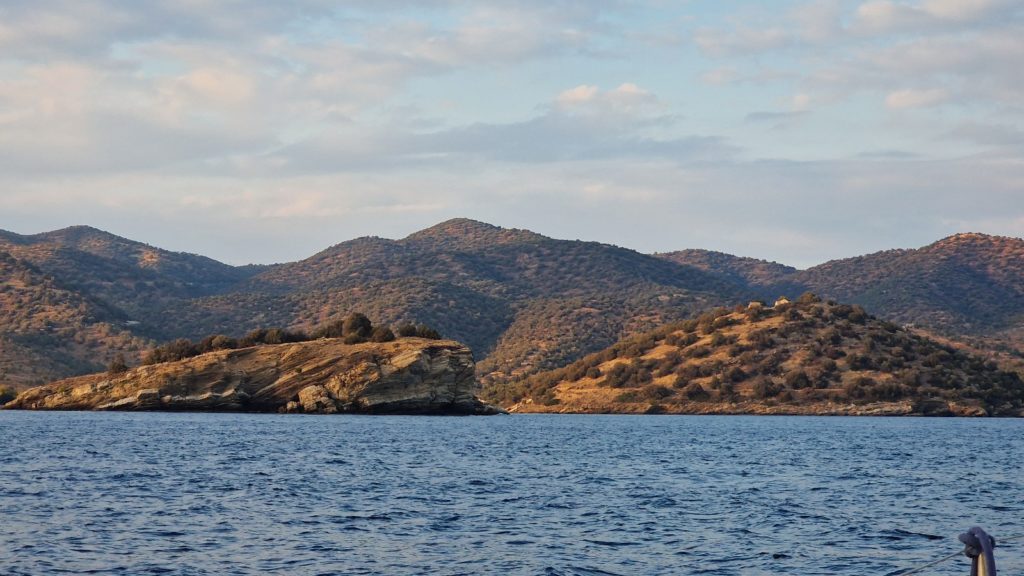 8h Départ de Poros de Petitou avec Nereida, et Mistral Gagnant direction Kea. Peu de vent et mer plate.
