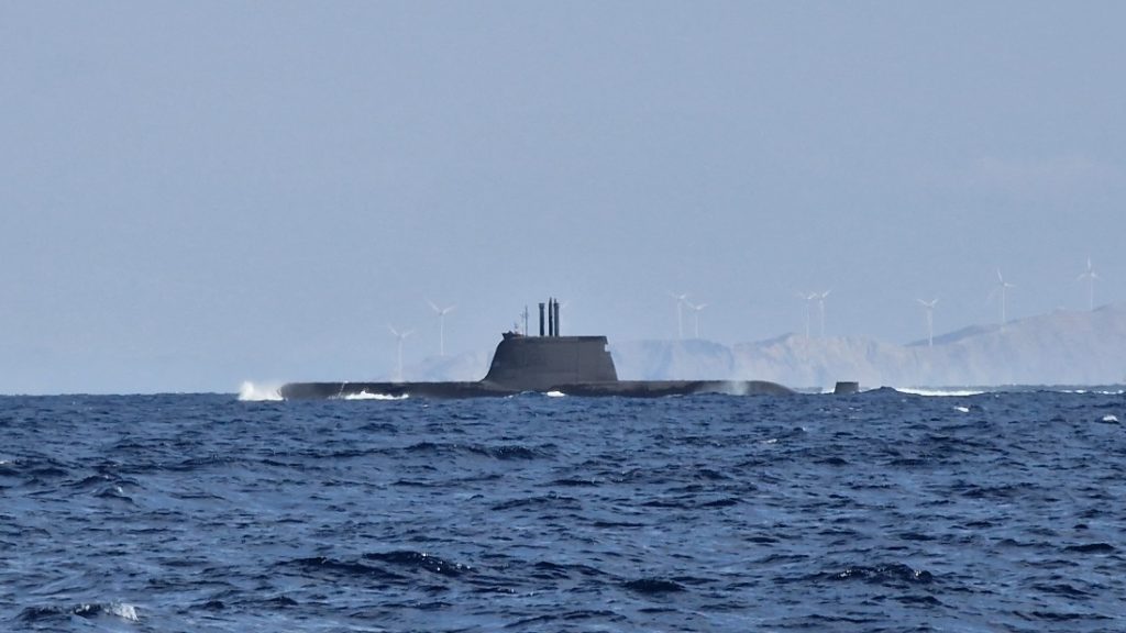 13 h vent 10 kts près bon plein GV arrisée et génois vitesse 5.5 kts Position 36.807992,25.705911
