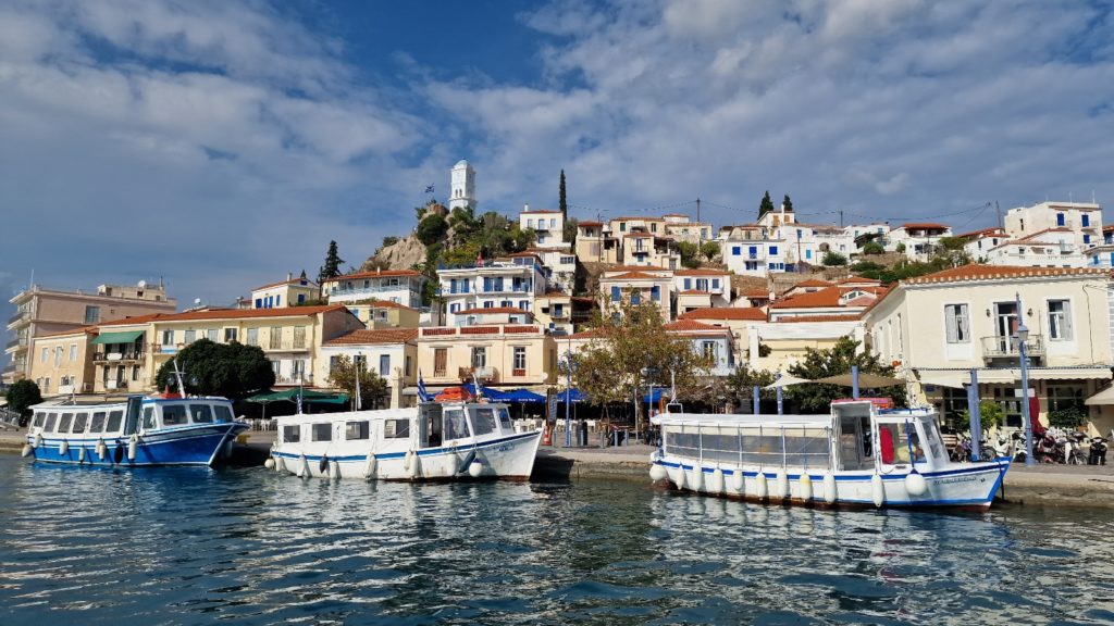 Arrivée typique au Pirée puis Poros. Reçu par Pascal et ses filles