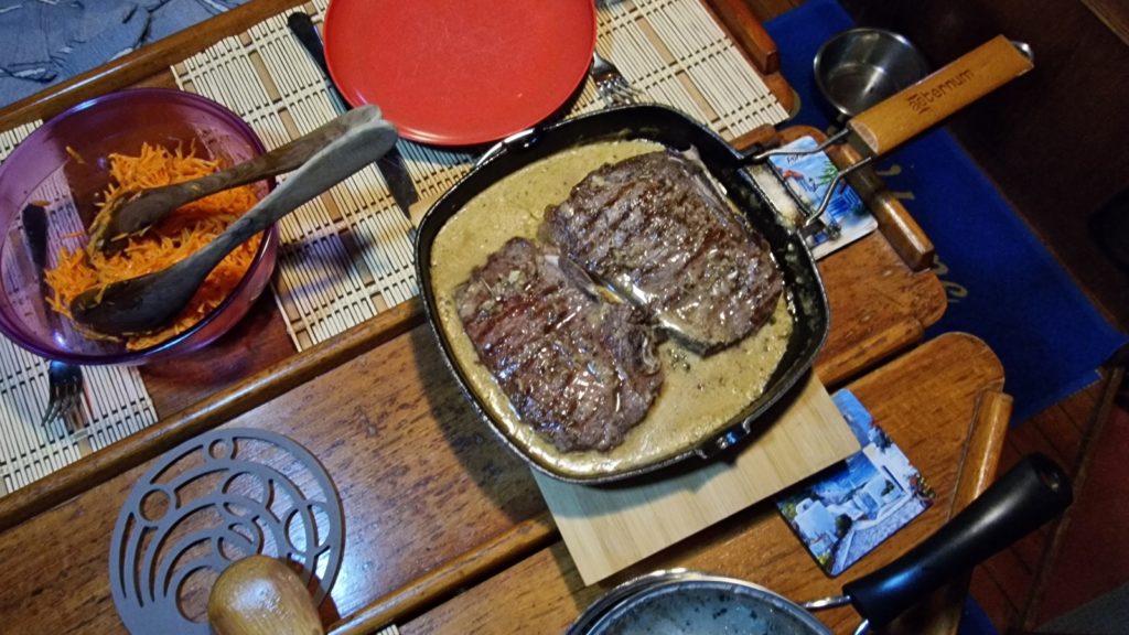 Super repas sur Mistral Gagnant. Une Côte de boeuf pour 3, champignons et pommes de terre. Un délice