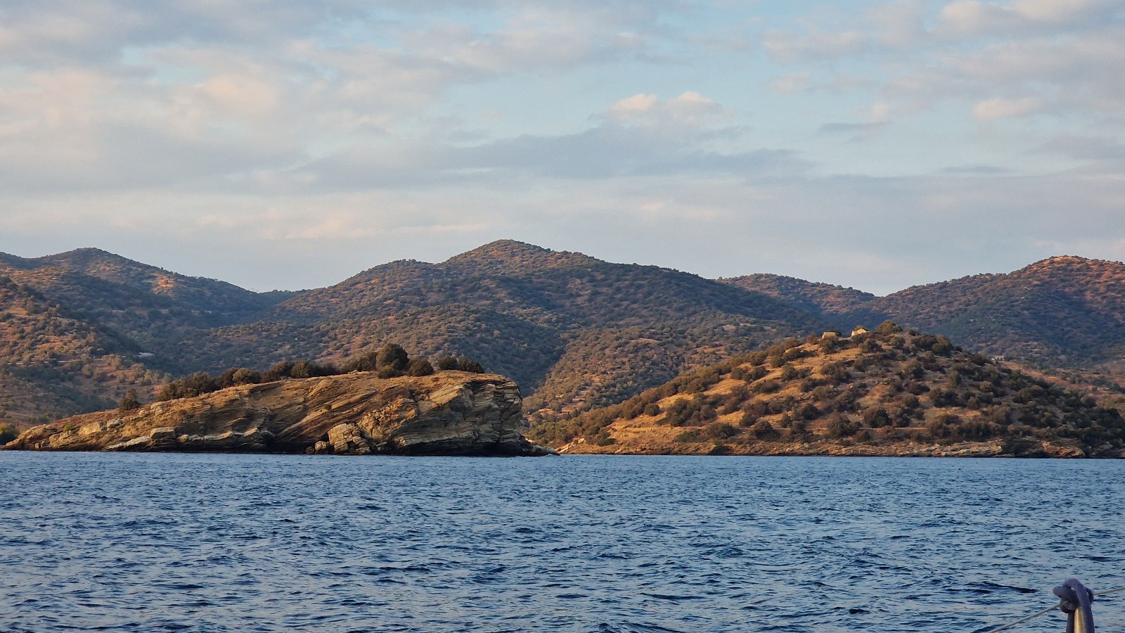 De Soupia à Russian Bay à la voile puis je traverse Poros et rejoins Arraial. Belles côtes de boeuf.