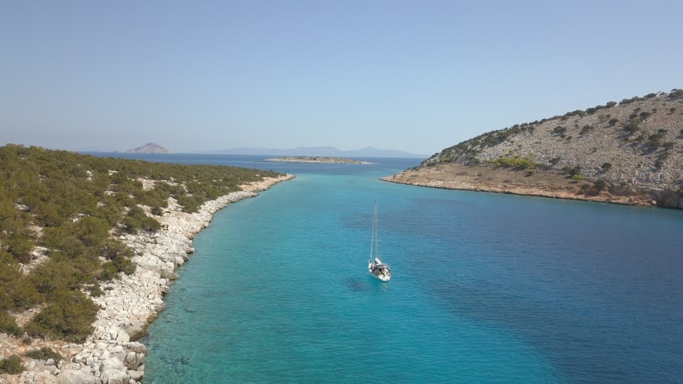 Dokos est une ile en face d’Hydra. Très courue en été étant près de Poros. J’ai trouvé une petite baie déserte à l’Est. A l’Ouest la petite baie « piscine » est praticable en Mai e t difficile en été.
