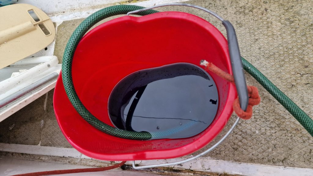 1. Acheter 3l d’antigel dans une station service et remplir le seau d’antigel