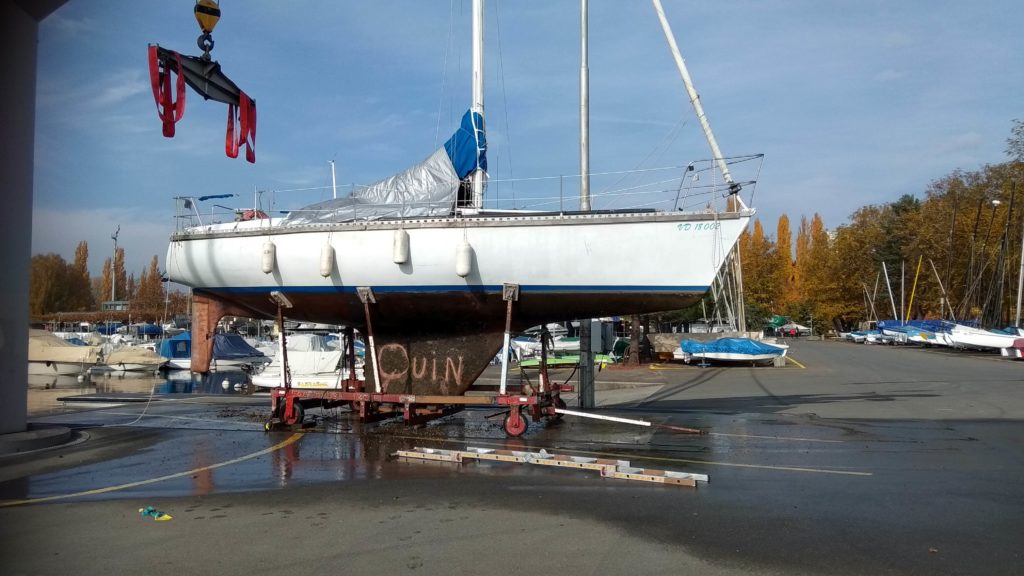 QUINQUIN LA FLOTTE a été acquis en 1999 et depuis navigue sur le Lac Léman. L’idée étant de se familiariser avec un voilier de 33′ en vue de navigations en mer et en solitaire.